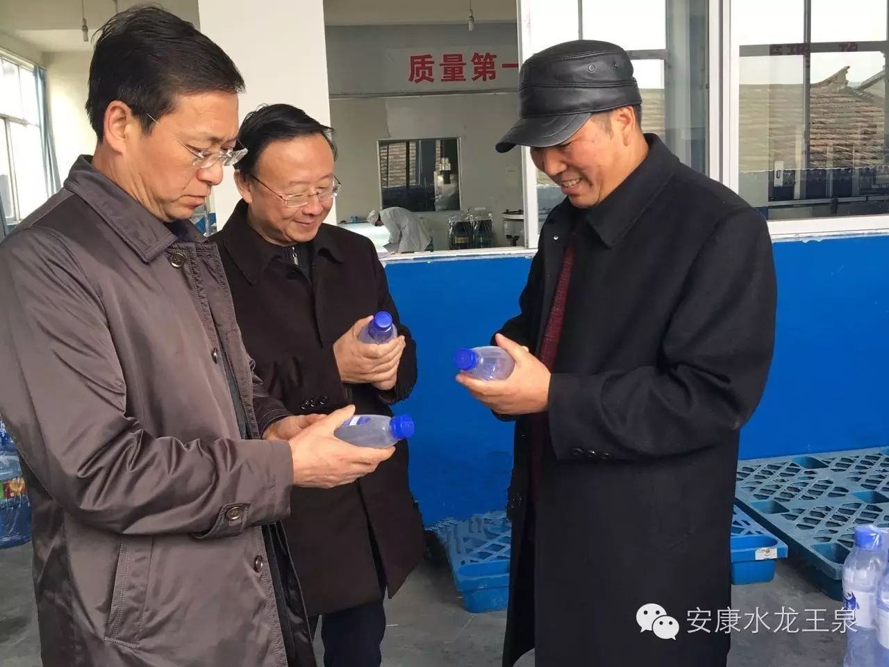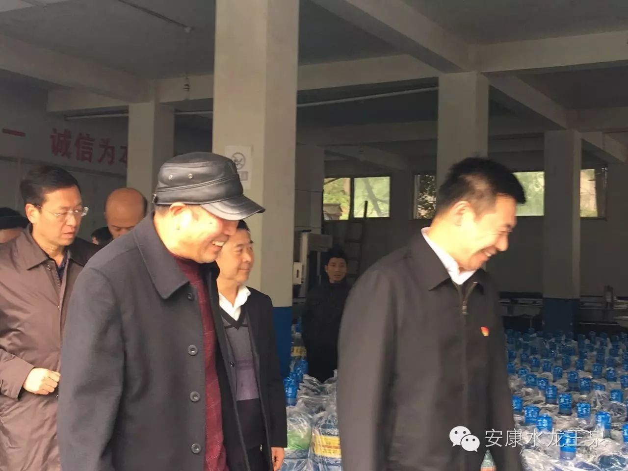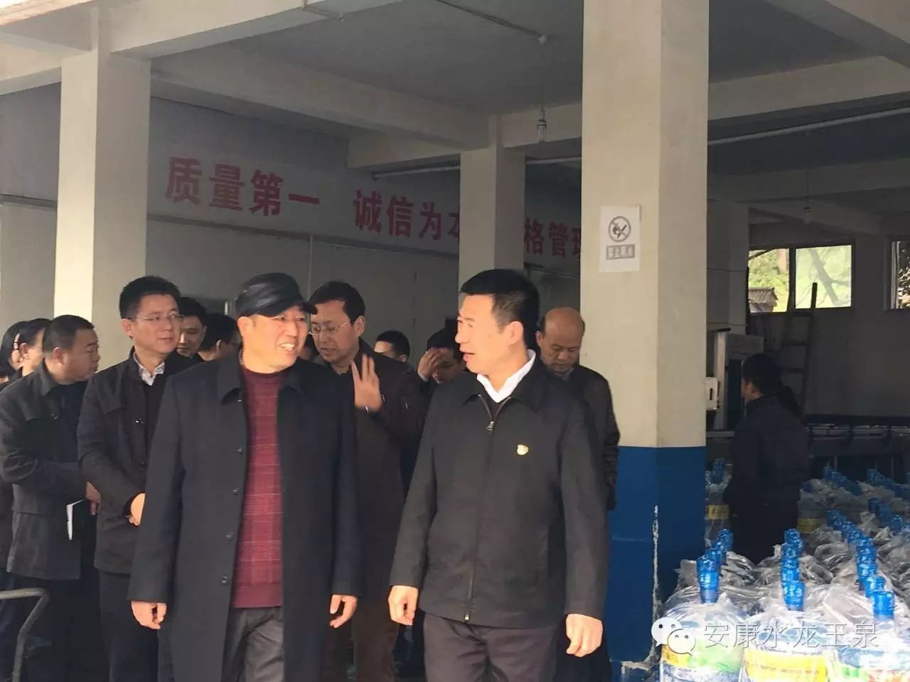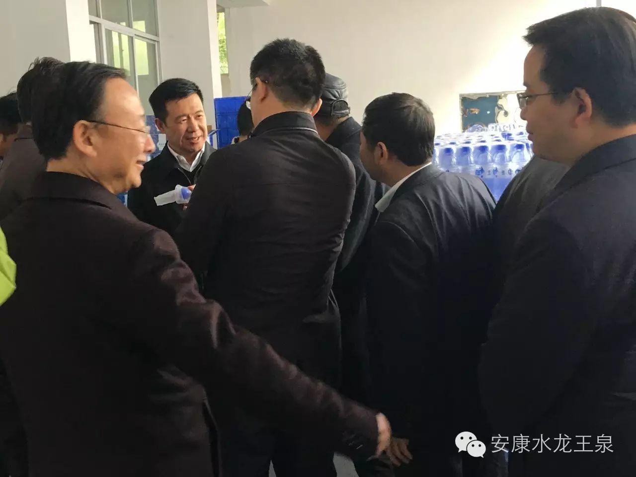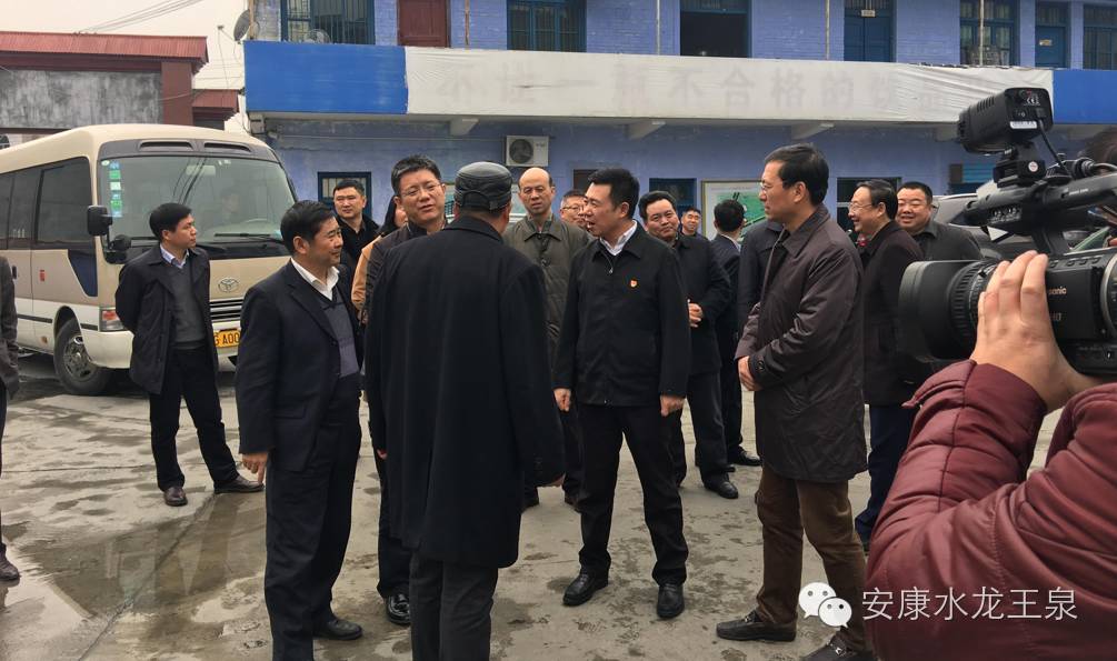 2016年11月29日下午市委书记郭青、区委书记王孝成、副区长荆钟、经贸局领导、工信局领导及相关部门领导,相关企业负责人来到汉滨区关庙镇龙王泉水厂调研。