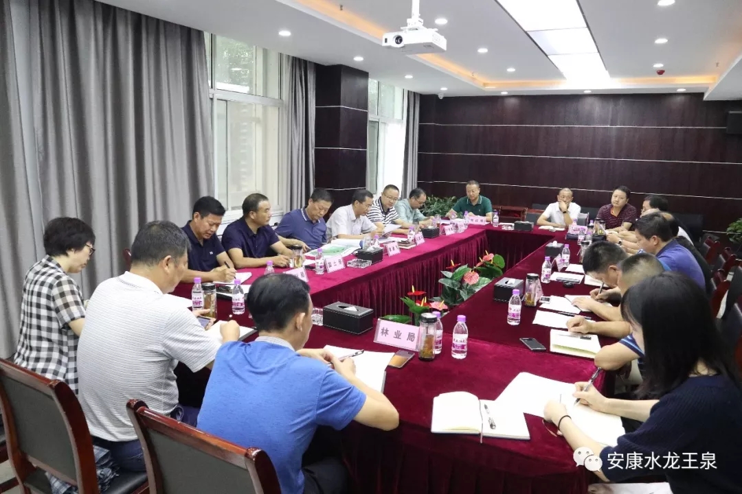汉滨区政协主席李建飞、区政府副区长冯荣平一行莅临我公司,召开公司年产30万吨龙王泉富硒水建设项目推进会